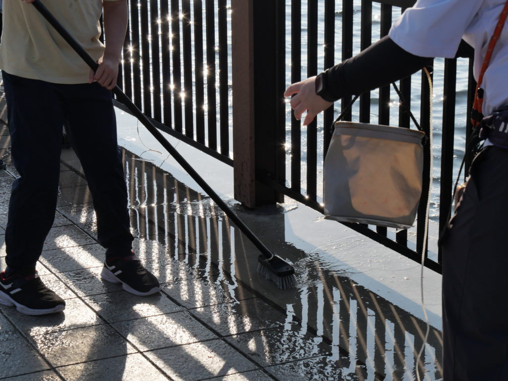 釣りが終わったら釣り座の片付け・清掃を行いました!みんなで使う釣り座なので、次に来た人が気持ちよく楽しめるように😌