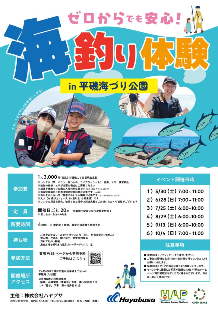平磯海づり公園(兵庫県神戸市垂水区)にて「海釣り体験」の開催が決定いたしました。